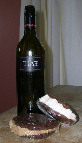 Then, there was the food. We started with sampling spicy pickles. They start off sweet and end with heat. Perfect for hamburgers. (We bought a jar on the way out.) Then we went for the whoopie. Pumpkin, of course. Next, teriyaki chicken on stick and garlic bread. Yet another whoopie. Pumpkin, of course.